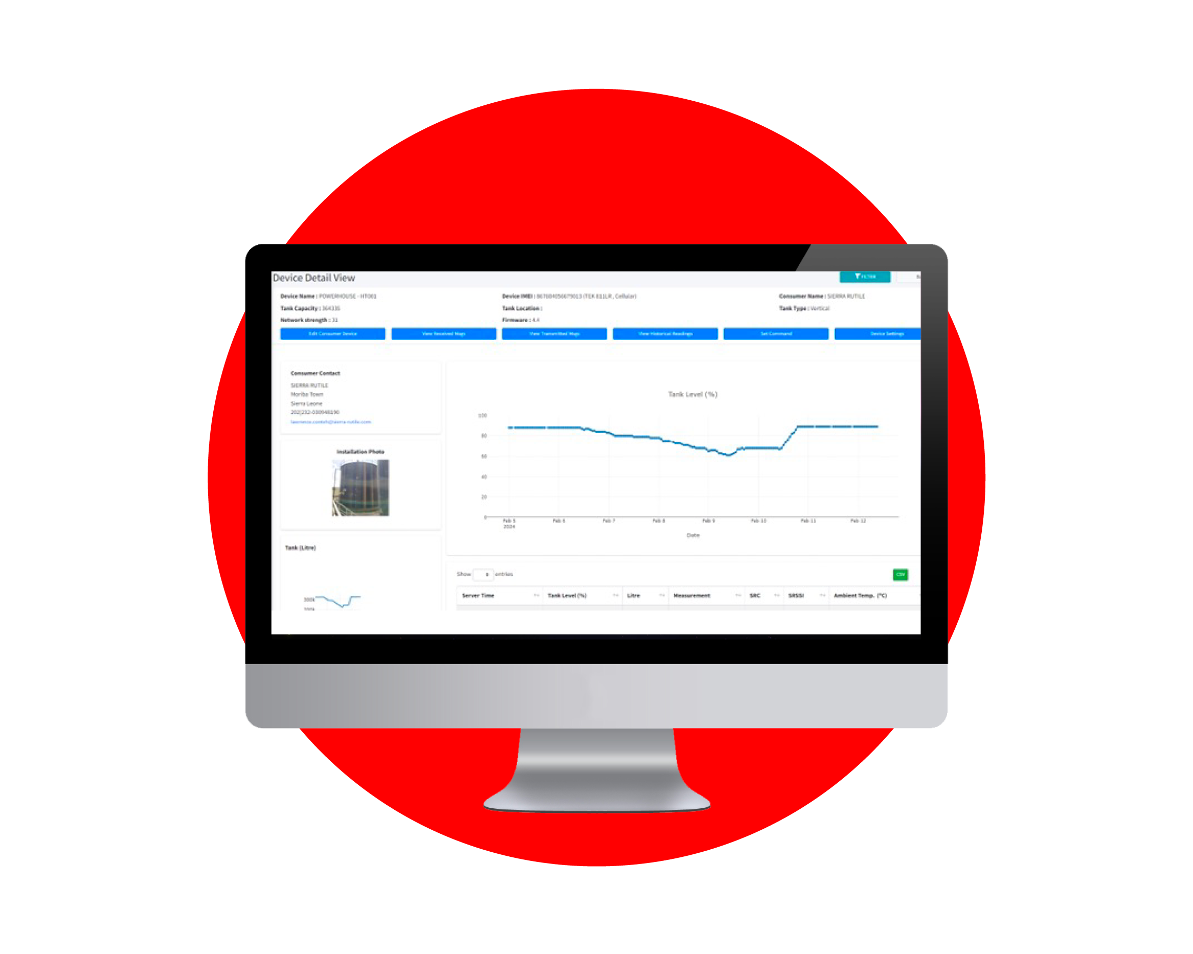 Notre système ATG a transformé la surveillance du niveau des réservoirs en vrac en étant entièrement autonome, fonctionnant indépendamment des communications et de l'alimentation du site. Les données précises sur le niveau de liquide sont transmises via le réseau GSM à notre application logicielle basée sur le cloud.